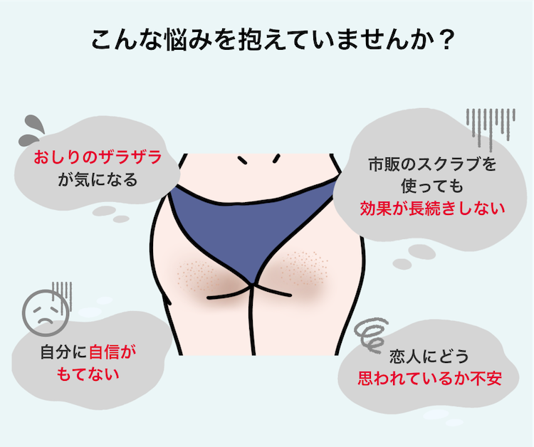 特に、おしりのザラつきや黒ずみは、自分では気づきにくいもの。