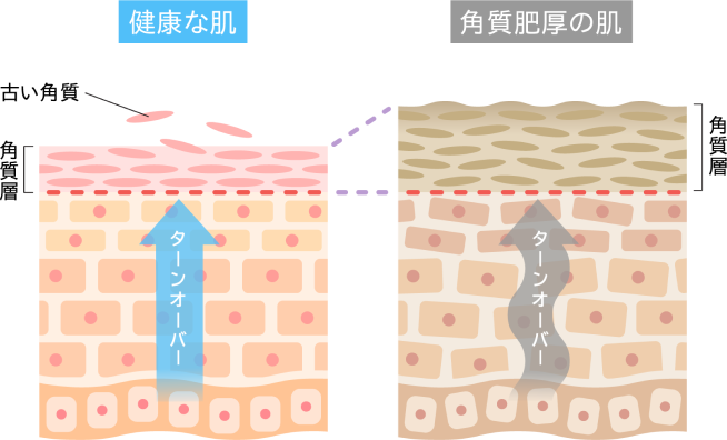 この状態を角質肥厚といい、ごわつき・ざらつき・くすみが目立ち、キメが乱れ化粧品の浸透力も低下してしまいます。